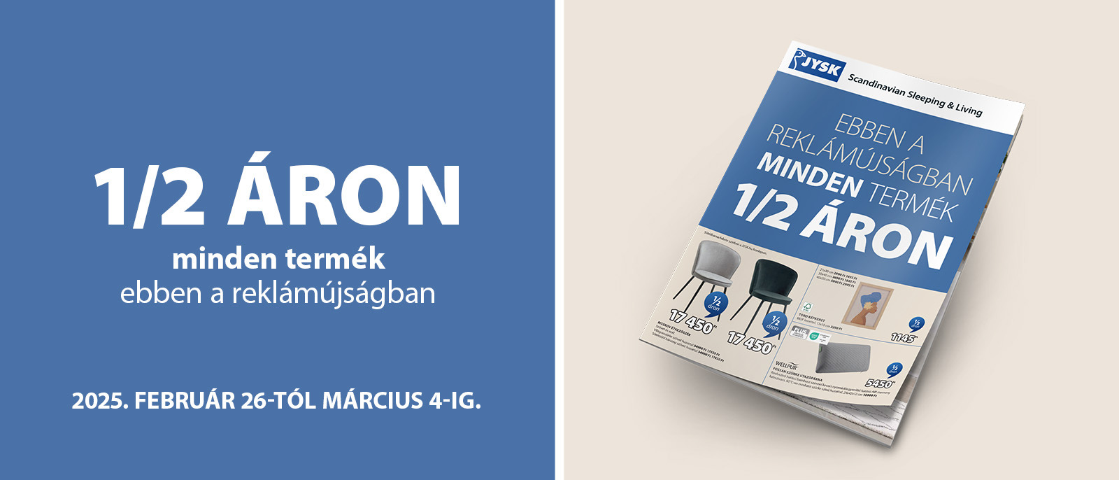 Most számos népszerű termékünket féláron vásárolhatja meg! 1/2 áras termékeink között talál bútorokat, fürdőszobai kiegészítőket, lakástextíliát, matracokat, ágyneműket, kerti termékeket, és sok mást! Lapozza át reklámújságunkat és fedezze fel minden féláras ajánlatunkat!
