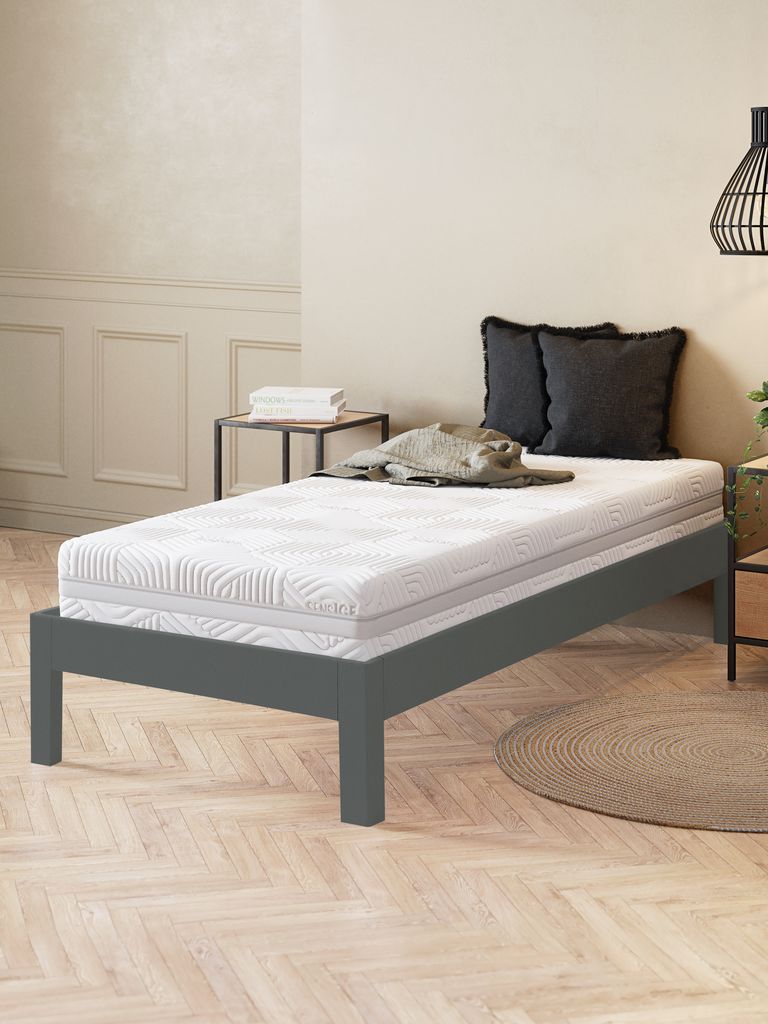 24 cm vastag habszivacs matrac 90x200 cm-es méretben, 5 komfortzónával, amelyek precíz, optimális alátámasztást nyújtanak a teljes testnek. Magja 1 cm jól szellőző kókuszrétegből, 19 cm poliéter habszivacsból és 3 cm nyomáskiegyenlítő hatású memory habszivacsból áll, amely precízen alkalmazkodik a test formájához. Mosható huzattal, amely az egyik oldalon hűsítő hatású SensICE szövetet tartalmaz.