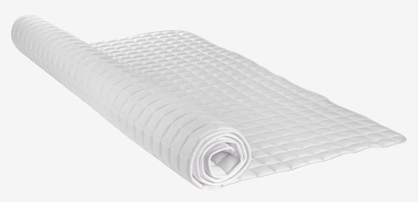 Magas hőfokon mosható matracvédő 140x200 cm-es méretben, szilikonizált üreges poliészter szállal (100% újrahasznosított) vastagon steppelve. Gumis sarkokkal.