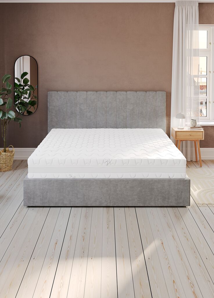 22 cm vastag megfordítható rugós matrac 160x200 cm-es méretben, 278 db/m² mini táskarugóval. 7 komfortzónával, amelyek egyedi, ergonómiailag megfelelő alátámasztást nyújtanak a teljes testnek. Poliéter habszivacs betéttel. Vastagon steppelt, mosható huzattal. A matrac oldalán végigfutó szellőzősáv elősegíti a matrac optimális szellőzését.