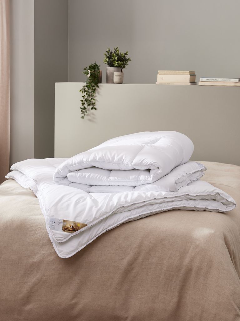 | Töltet | Az üreges szálak levegővel töltődnek fel, ezáltal jobb szigetelő és nedvességelvezető képességűek, mint a hagyományos tömör szálak, így növelve a kényelmet. A szilikon bevonat sokkal hajlékonyabbá és simábbá teszi a szálakat, így a paplan könnyű és szellős marad. |
