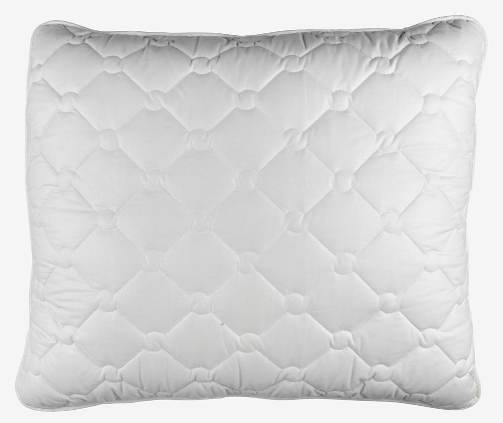 Luxus minőségű párna 70x80 cm-es méretben, 800 g puha szilikonizált üreges poliészter szál töltettel. Gyapjúval steppelt 100% pamut huzattal.
