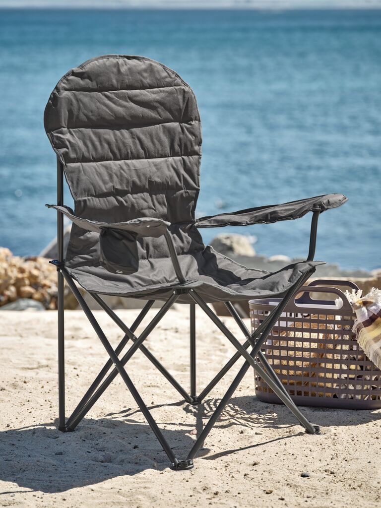 Kemping szék acélból és poliészterből. Összecsukható. Tárolótáskával.