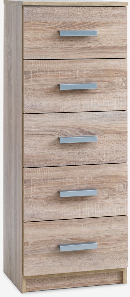 TAPDRUPKomód TAPDRUP 5 fiókos keskeny világos tölgyszínű